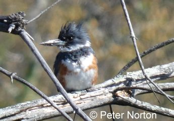First, we heard a gray catbird calling in the parking lot. Next, we walked a short distance up Still River Depot Road where we saw and heard a few more catbirds, as well as many robins, starlings, a couple of common yellowthroats, a red-eyed vireo, and several cedar waxwings that were high in the treetops. Walking up Still River Depot Road is a good thing to keep in mind to do. Then we headed back past the parking area and began walking the Tank Trail where we saw several song sparrows, an American redstart, and heard a yellow-throated vireo singing its unmistakable song. We caught a glimpse of two green herons, counted at least four great blue herons, two belted kingfishers, a solitary sandpiper, among others.