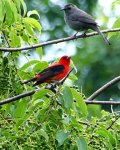 - Gray Catbird and Scarlet Tanager. Photo © by Susan Page.